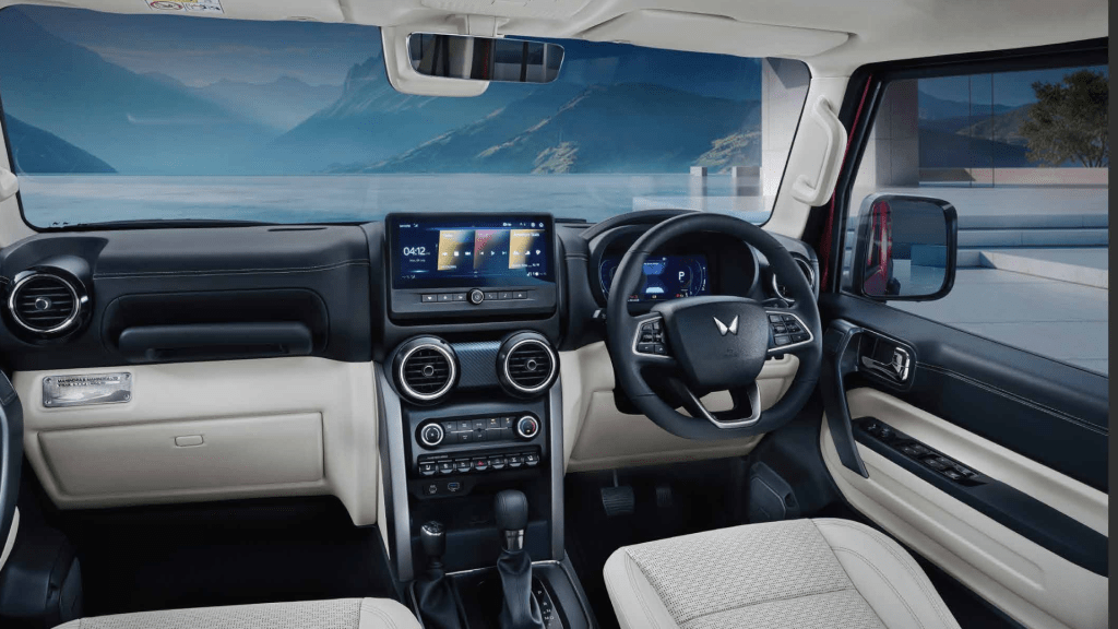 The revised design of the Roxx gracefully resonates with the Thar’s innovation and tradition. In contrast to its 3-door sibling, the 5-door Roxx features a stellar dual-tone metal roof with a panoramic sunroof, rugged external hinges, side-mounted door handles for rear doors that open to 90 degrees and trapezoid wheel arches. The stylish C-shaped LED DRLs are an extra charm, gifting the Roxx with a signature sleek and aggressive stance, significantly upscaling the vehicle’s alluring appeal. All this is complemented by an elevated ground clearance and a commanding upright A-pillar, which bedazzles the Roxx with its much-needed first impression.